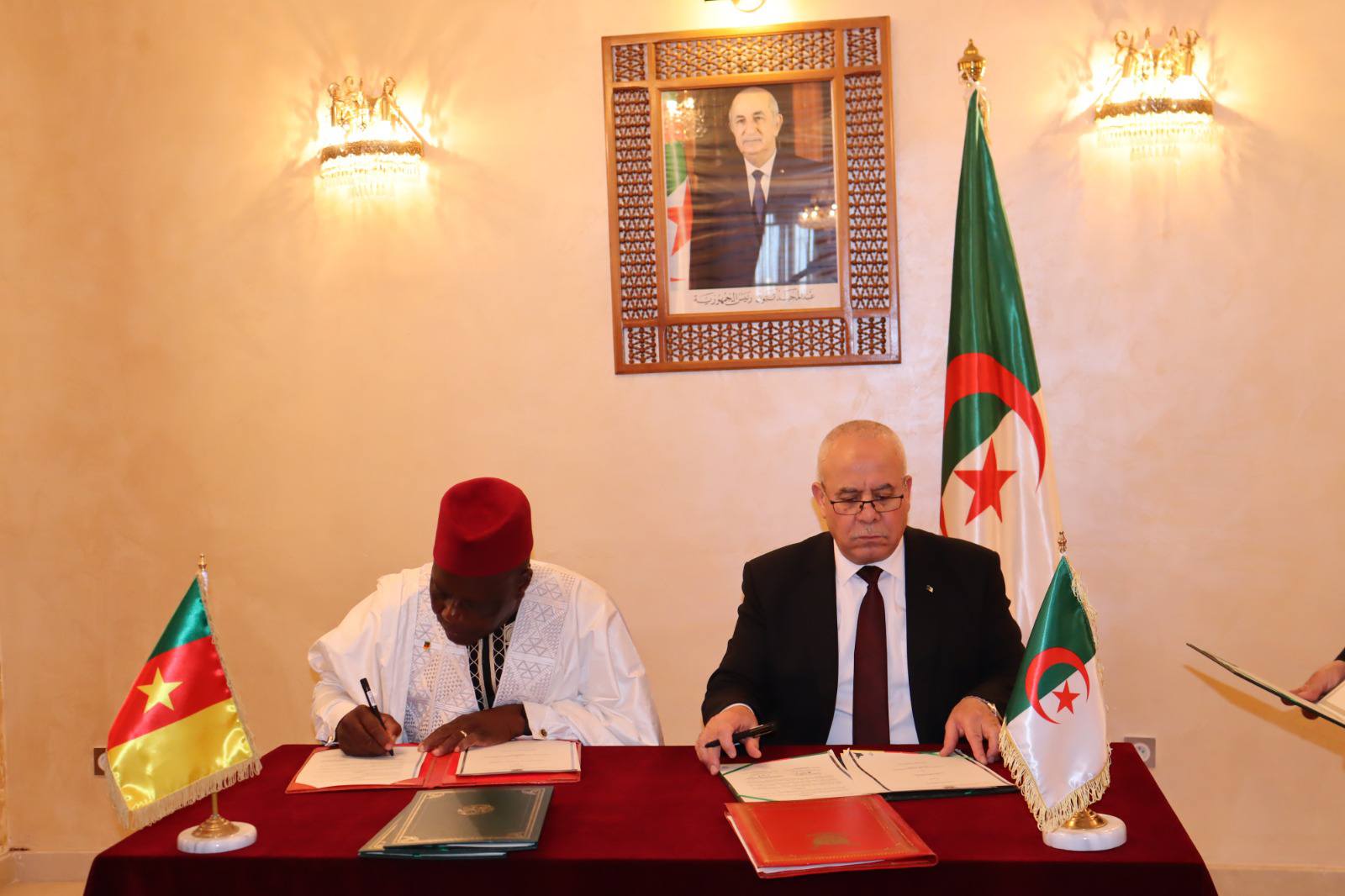 وجاء التوقيع ضمن زيارة عمل يقوم بها وزير الفلاحة والتنمية الريفية الكاميروني، جبرائيل مبيروب، للجزائر لمدة ثلاثة أيام، حيث استقبله وزير الفلاحة والتنمية الريفية والصيد البحري الجزائري، يوسف شرفة.